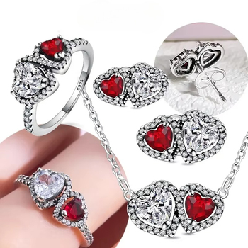 Màu Đỏ Hình Trái Tim Thiết Lập Cho Phụ Nữ Sang Trọng Vàng Hợp Kim Phụ Kiện Bao Gồm Đôi Trái Tim Cổ Điển Vòng Vòng Cổ Đám Cưới Engagements